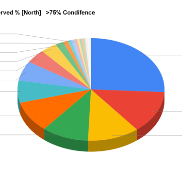 The most frequently observed plant species across Churchtown Dairy. It shows the proportion or count of each plant type, offering a clear view of the dominant flora on the farm.